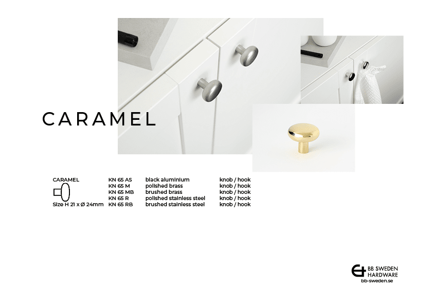 CARAMEL is a small round knob that can also be mounted as a wall hook, screws for both purposes are included. Place it in the kitchen, bathroom or why not on the hall dresser? CARAMEL will give a soft and elegant expression in most interior styles.